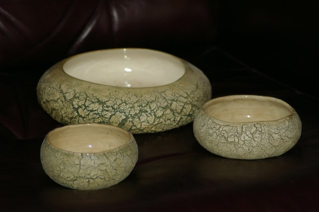 Weathered Sage Green Porcelain Bowl Set (WP LG Bowl 01 SG, WP MD Bowl 03 SG)